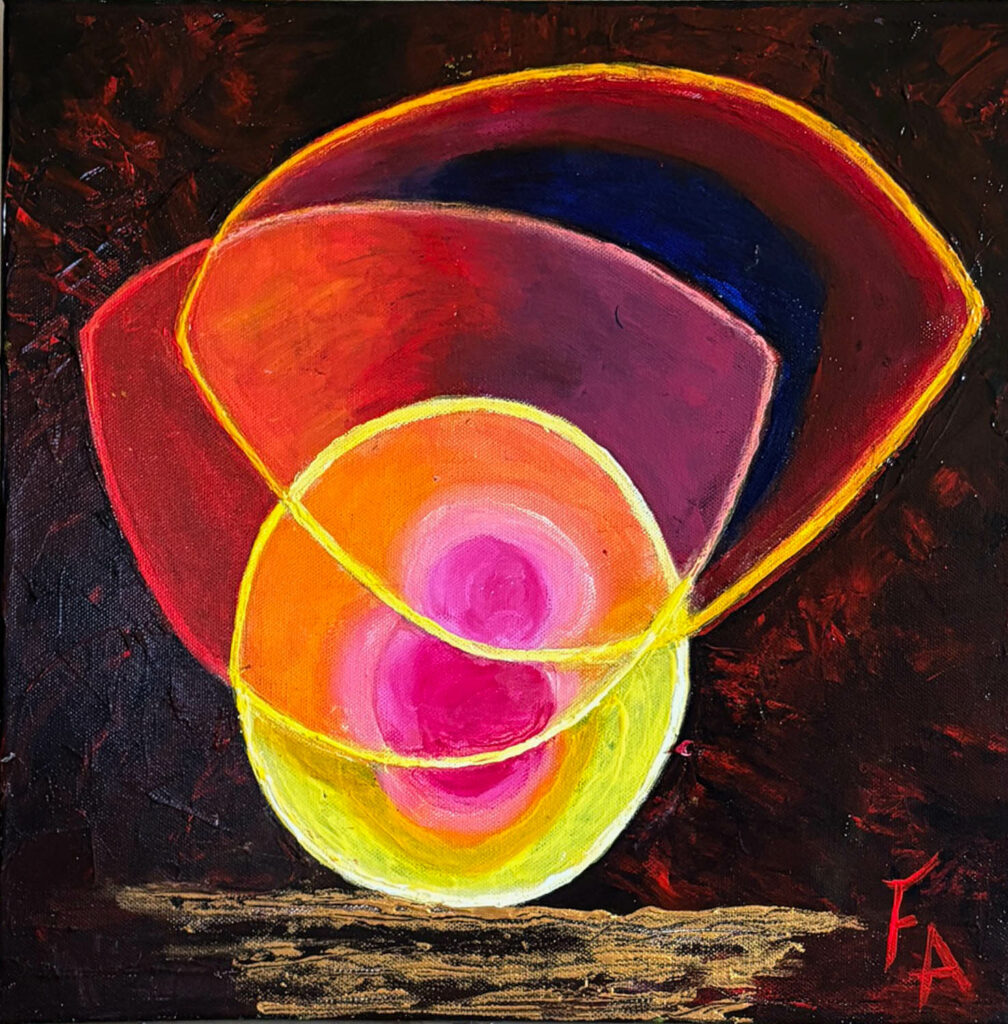 Les formes gĂ©omĂ©triques et les coloris sâentrechoquent entre le froid et le chaud, les couleurs se fondent en aplats dans un espace bidimensionnel. Lâexploration de mon esprit sâouvre dans ce domaine inconnu. Je fais abstraction du monde rĂ©el et de toute figuration, son contraire dans mon vĂ©cu pictural jusquâalors.